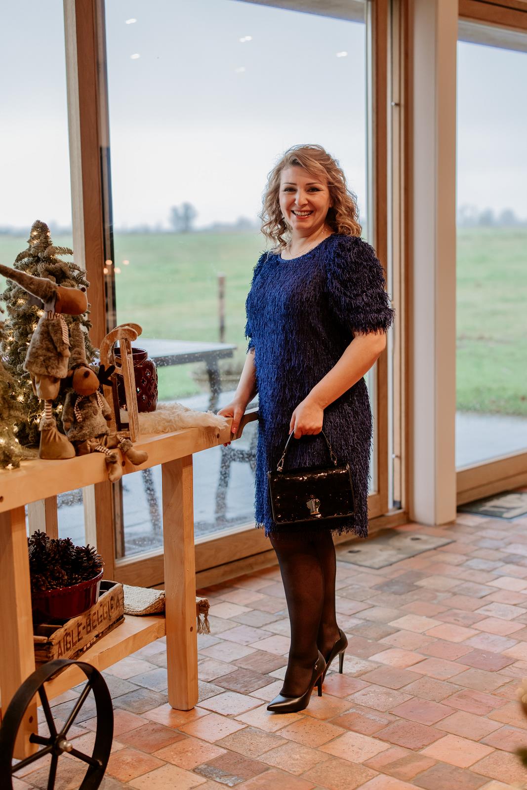 Deze donkerblauwe jurk is pure feestmagie, queen ? De fijne fluisjes geven een speels, elegant effect en de lichte glitter zorgt voor een subtiele fonkeling die perfect is voor de feestdagen — stijlvol zonder overweldigend te zijn. De jurk valt mooi, voelt licht aan en beweegt zacht met je mee. Een prachtige keuze voor kerst, nieuwjaar, een winterfeestje of elke gelegenheid waarop jij graag straalt.