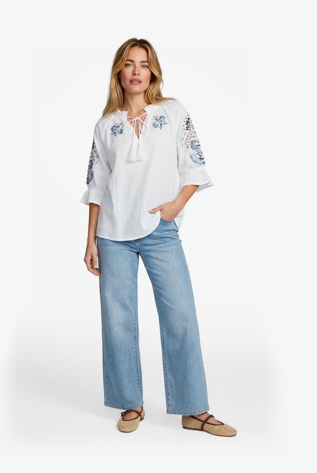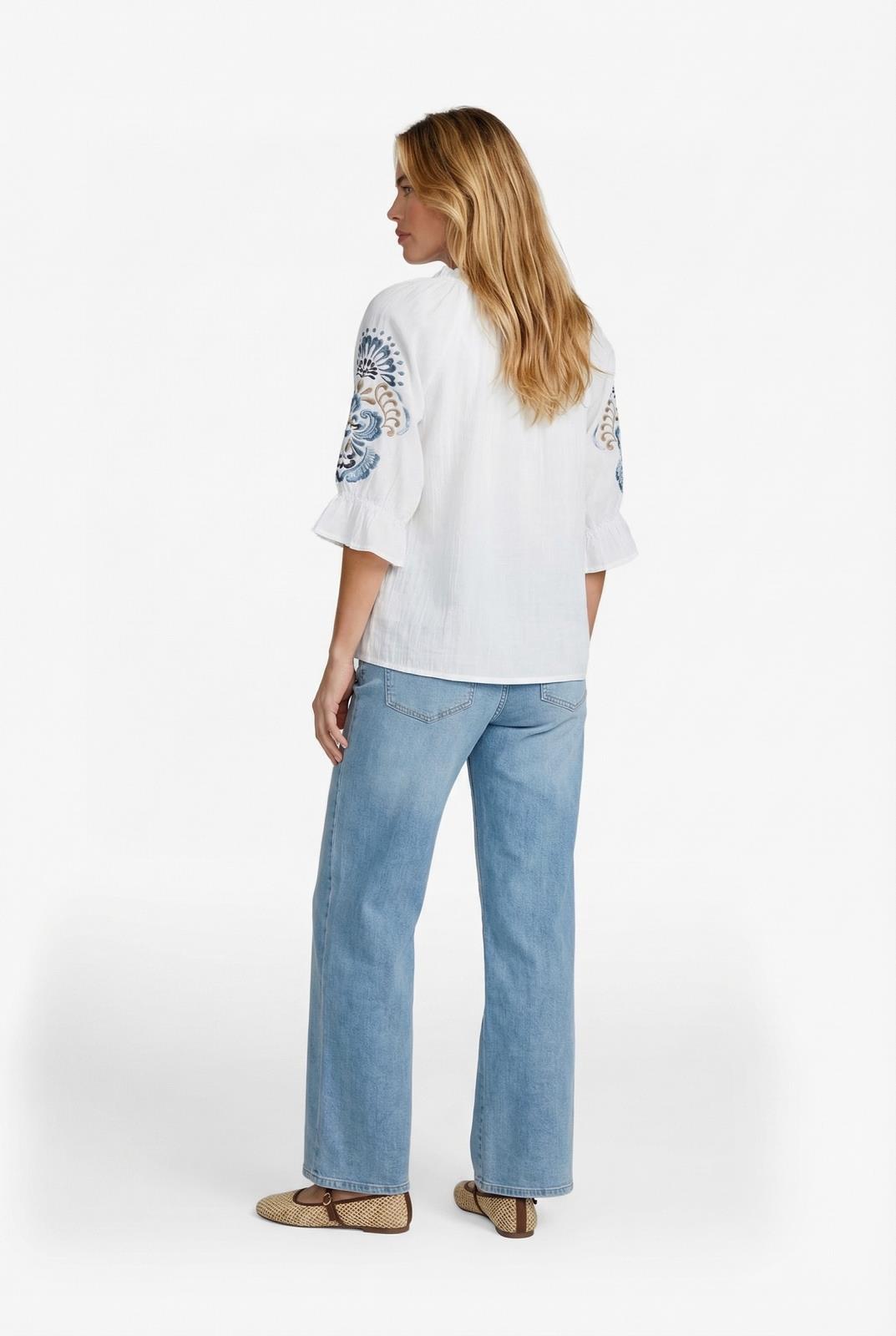 Zomerse witte blouse met stijlvolle afwerking op de mouwen en borst.