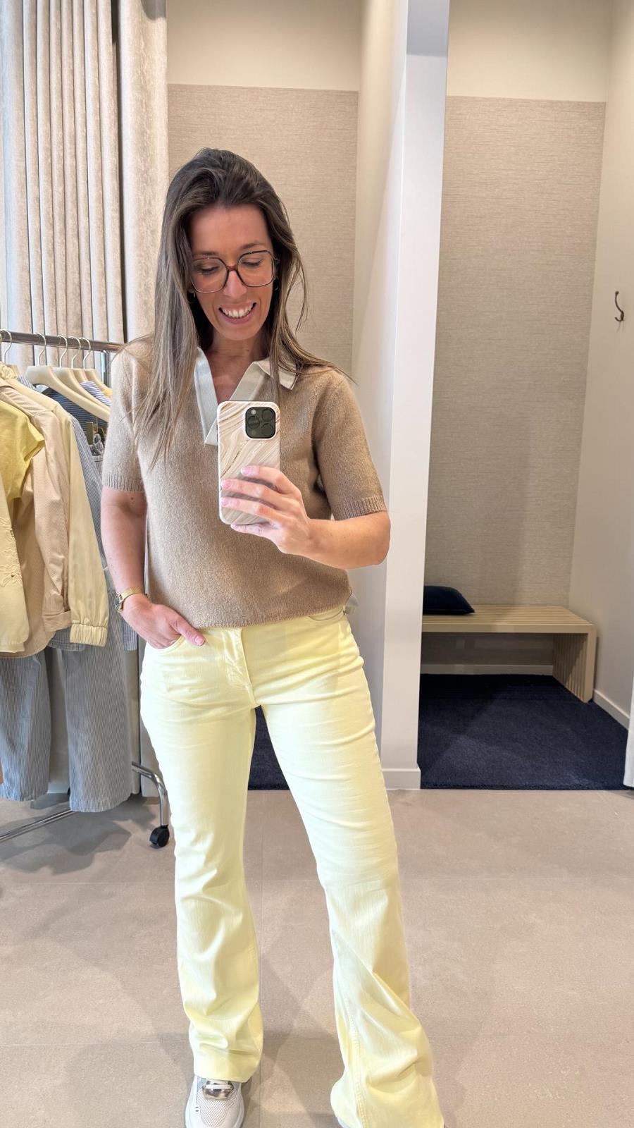 Lindsay is 1.65 m en draagt maat 36