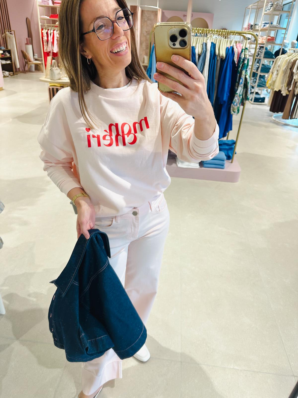 Lindsay is 1.65 m en draagt maat S