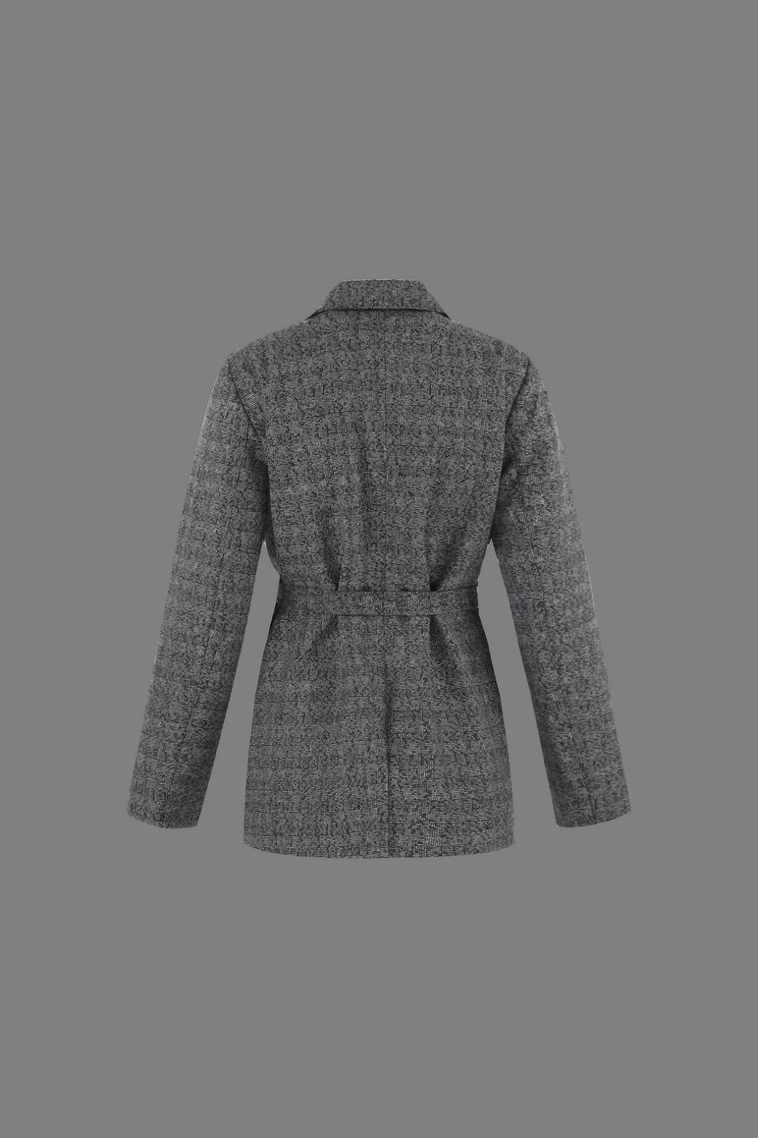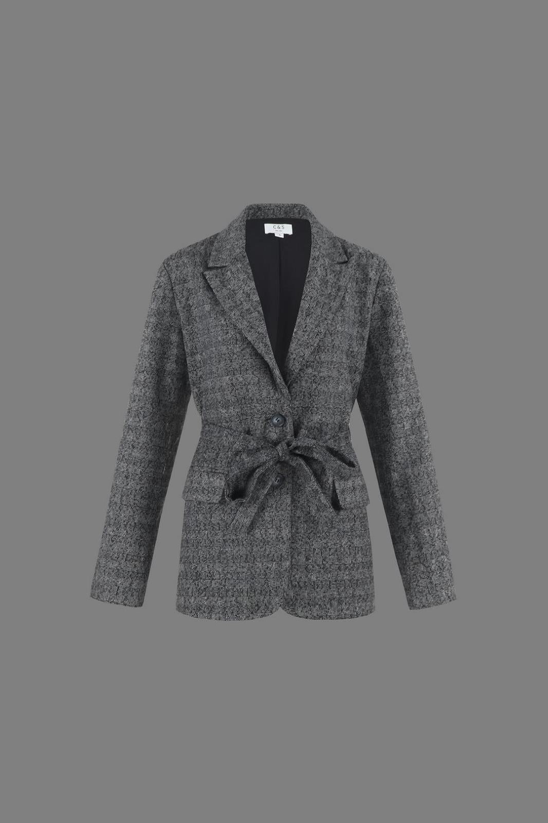 Deze zwart-grijze blazer is een stijlvolle en veelzijdige toevoeging aan je garderobe. Het lint rond de taille accentueert je silhouet op een flatterende manier, terwijl de klassieke snit en elegante kleurcombinatie zorgen voor een tijdloze look. Perfect om te dragen op kantoor, bij een chic diner of casual met jeans.