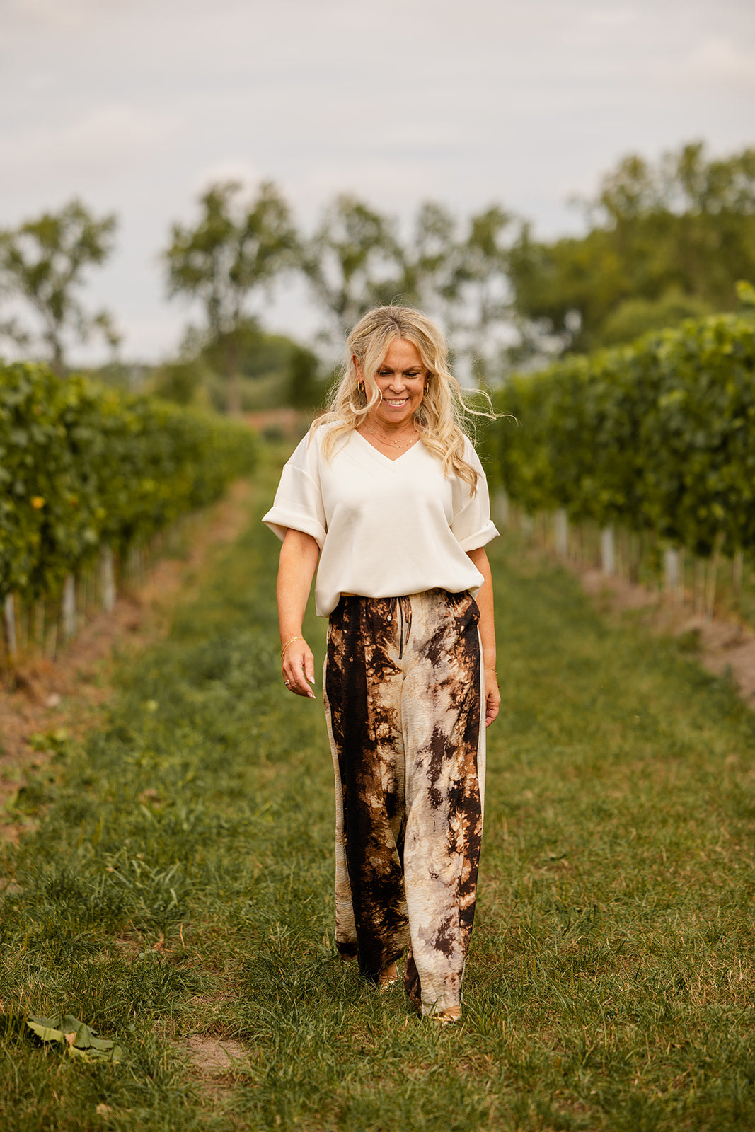 Deze flowy broek mixt comfort met karakter. Het patroon in warme bruin- en beigetinten straalt klasse uit, terwijl de elastische tailleband met lintje zorgt voor een comfy fit. Combineer met een effen top of ga voor de volledige match met andere neutrale tinten. Een topper voor het tussenseizoen!