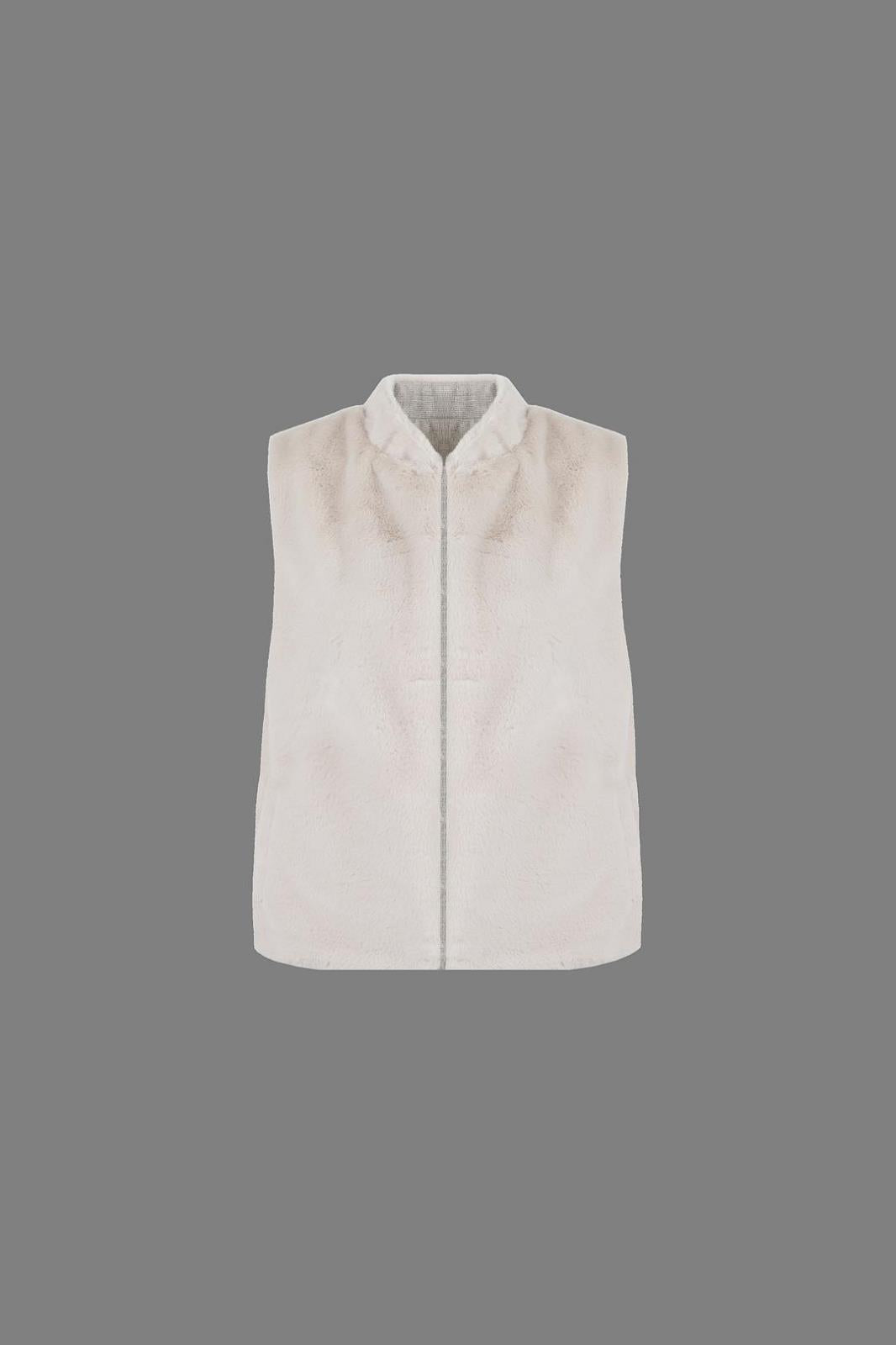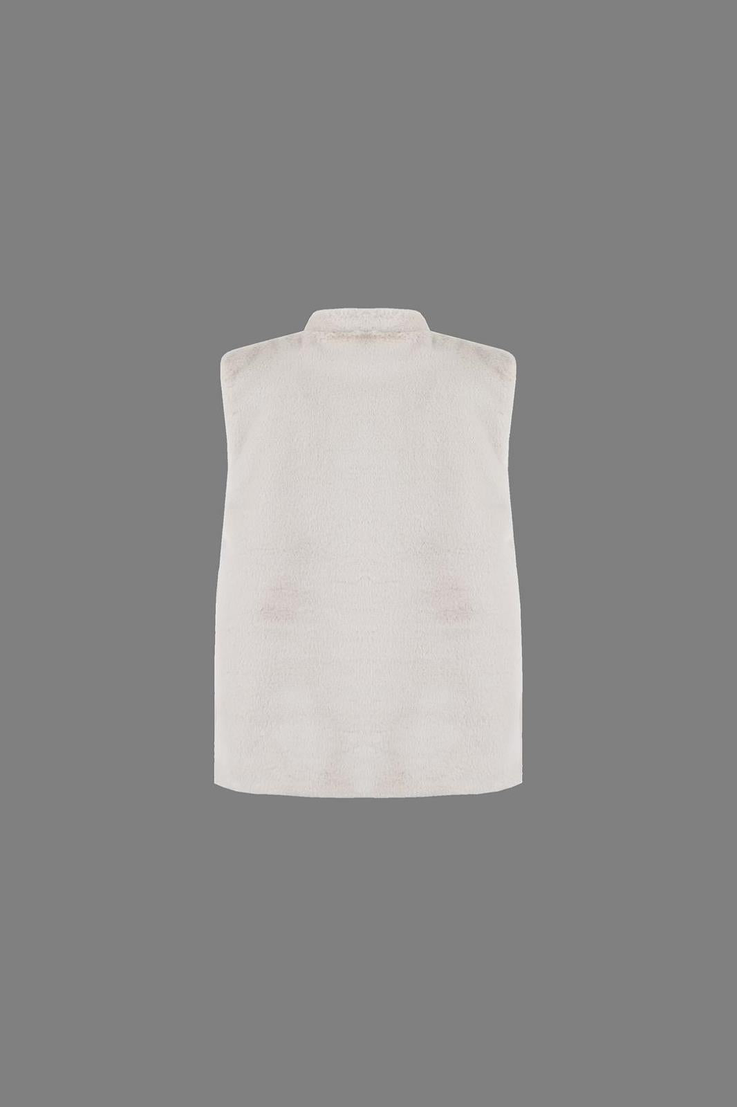 Dit beige teddy gilet zonder mouwen is een zachte en warme toevoeging aan je garderobe. Het pluizige teddy-materiaal geeft een cozy en casual uitstraling, ideaal om over een trui, blouse of T-shirt te dragen. Een veelzijdig item dat comfort en stijl moeiteloos combineert, perfect voor het hele seizoen.