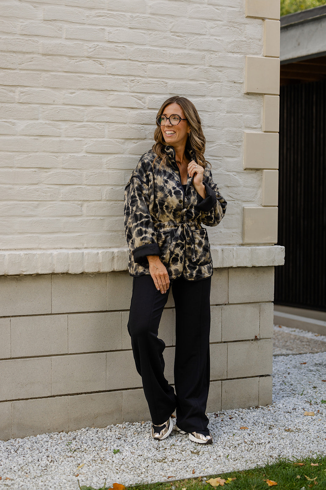 Chic en vrouwelijk ? Dit lichte jasje heeft een lint rond de taille en twee handige zakken, met een subtiele mix van zwart, kaki en bruin voor een speelse, elegante uitstraling. Perfect om te combineren met broeken of rokken en geeft elke look direct een moderne twist.