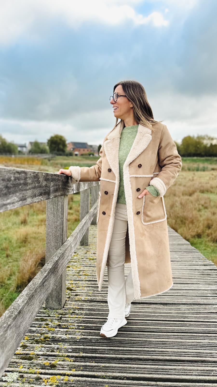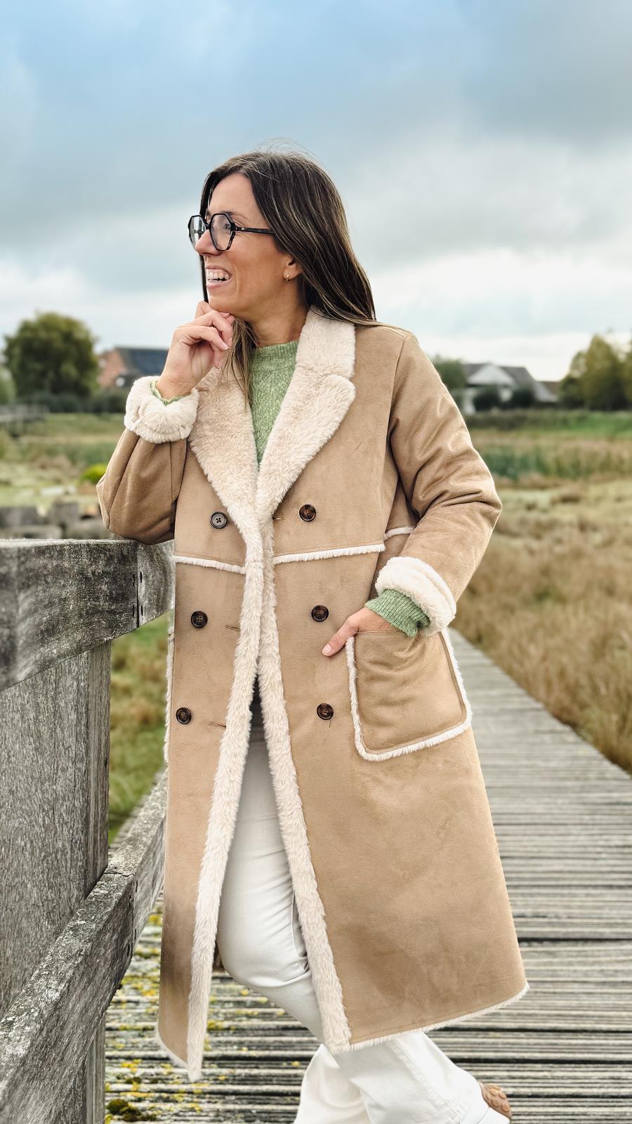 - De mantel heeft zakken aan beide zijden en een dubbele knoopsrij.