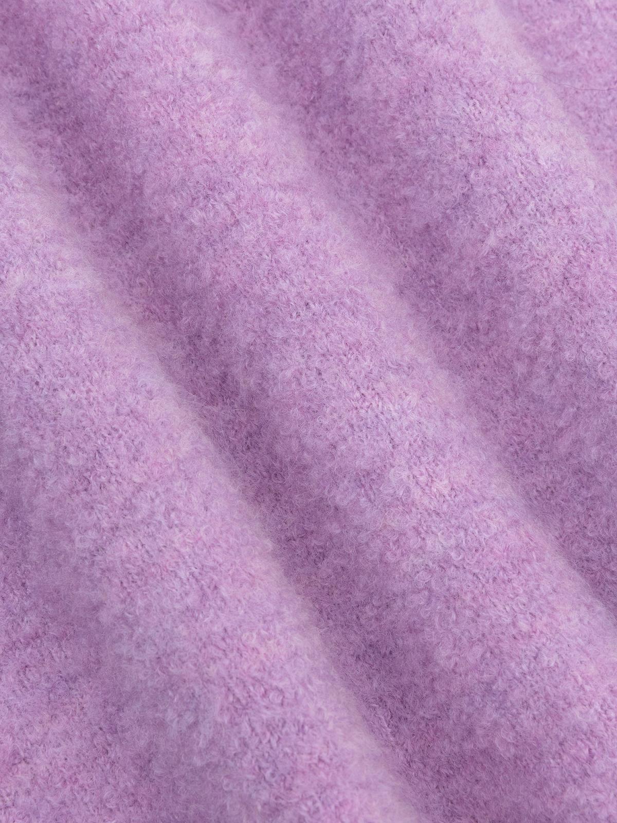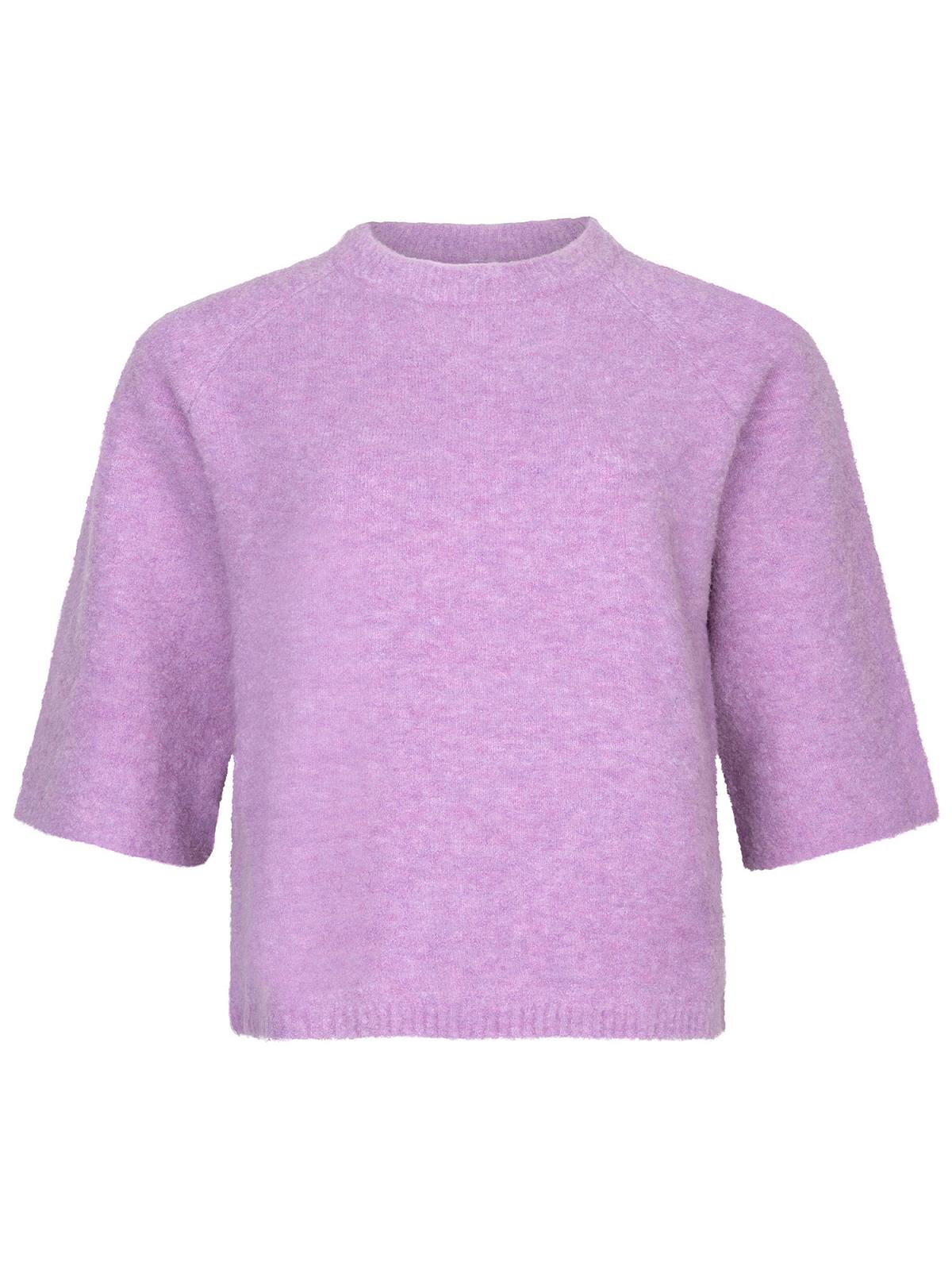 Zachte lila trui met korte mouwen en ronde hals.