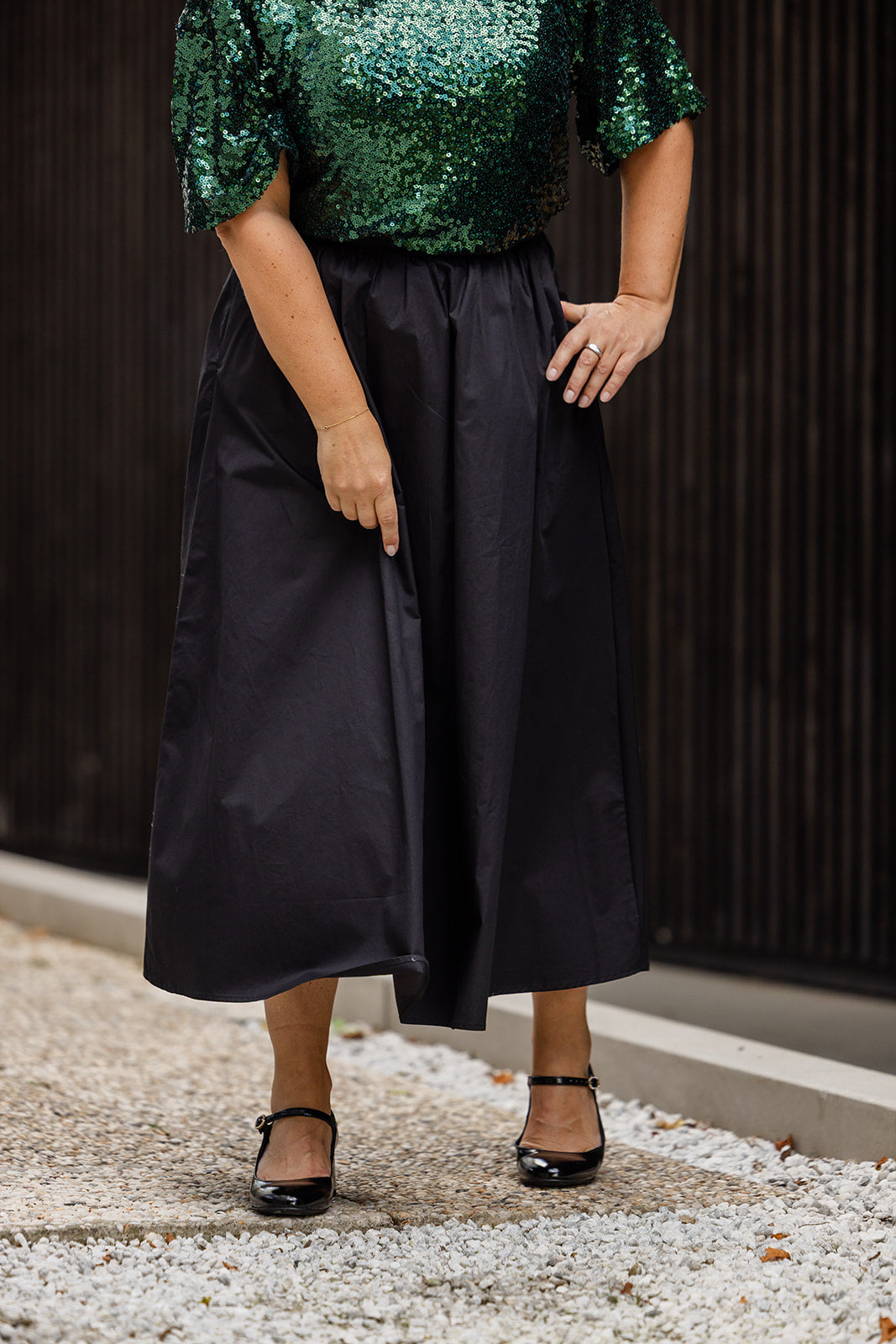 Elegant en tijdloos ? Deze zwarte lange A-lijn rok valt mooi rond de benen en is voorzien van een bijpassende riem om de taille te accentueren. Het flatterende model maakt hem ideaal voor zowel casual chic als geklede looks. Combineer met blouses, knitwear of een fijn topje voor een stijlvolle outfit.