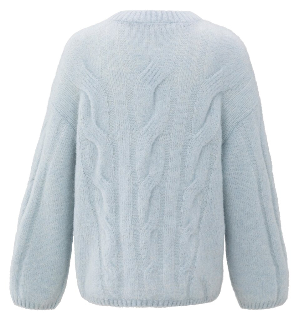 Deze zachte cable knit trui is een echte klassieker in knitwear. Met zijn fijne kabelstructuur en comfortabele pasvorm voelt hij heerlijk cosy aan, terwijl de lange mouwen en zachte wolmix zorgen voor warmte en stijl. Draag hem casual met jeans of elegant met een rok.