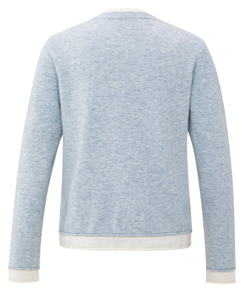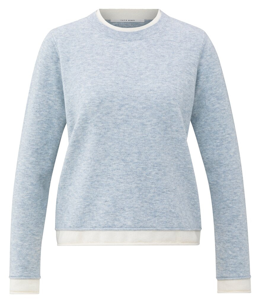 Dit lichtblauwe truitje met lange mouwen krijgt een verfijnde uitstraling door de subtiele beige contrasten aan de polsen, taille en hals. Het zachte materiaal zorgt voor een comfortabel draaggevoel, terwijl de elegante afwerking dit knit item een stijlvolle twist geeft. Perfect om zowel casual als chic te combineren.