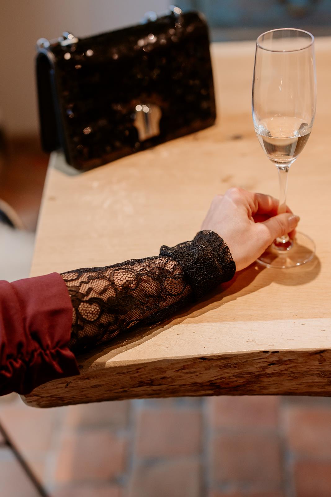 Deze zwarte kanten top is pure vrouwelijkheid. De lange, doorschijnende mouwen geven je outfit een verfijnd en sensueel kantje, terwijl het kantpatroon prachtig afsteekt op de huid. Licht, elegant en perfect om je look dat extra tikje luxe te geven. Ideaal voor feestjes, diners of wanneer jij gewoon zin hebt om te stralen.